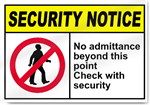 No Admittance Beyond This Point Check With Security Security Signs